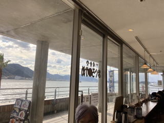 | 唐戸市場の2階には、1階で買ったものを食べるスペースがあった。中央を渡る橋からは、トレイを持って店を回る人の列が見えた。 食堂に入りたかった。人気の店は「よし」というところらしい。店の前を通りかかると、まだ11時を少し回ったばかりなのに順番待ちの人が。 さらに奥へ行った海峡の臨むところに食堂まぐろとかめがあった。こちらは、まだ席にも余裕があった。 |