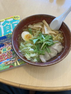 函館空港に着陸するときにはガツンと衝撃があったが、まあ順調な飛行だった。 到着してから、移動する前にまず腹ごしらえをしようとターミナル3階へ。2つの店があったが、一方はカフェっぽかったので、1854HAKODATEというレストランに入った。 自分はあまり腹も減ってなかったので、塩ラーメンにした。久々のラーメン。 |
