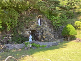 ルルドという南フランスの洞窟を模したものもある。かつて、ルルドの洞窟で少女は聖母のお告げを聞き、手で穴を掘ると泉が湧き、人々を助けたとか。 前庭の石段を上ると、修道院が静かにたたずんでいる。かすかに、シスターが修道女に話す声が漏れ聞こえてきた。 塀の向こう側は、敬虔な修道女たちの生活の場なのだ。 そのあと、資料館では、修道院の成り立ちや修道女の生活の一端を知ることができた。 |