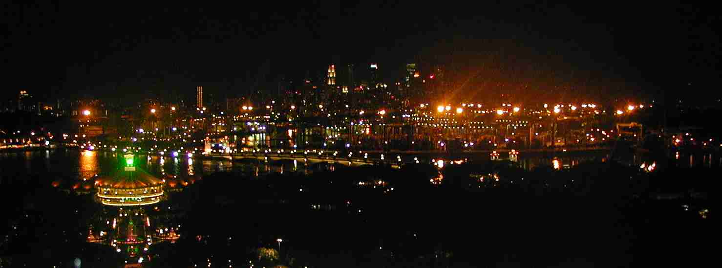 夜は、短いスパンで赤や青、緑と刻々と色が変わる。