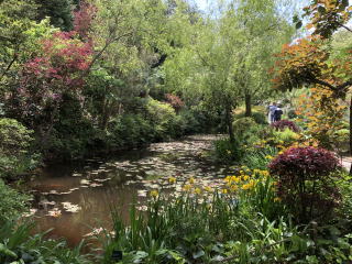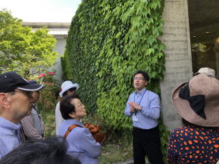 駐車場から地中美術館へ向かう道沿いに、モネの睡蓮の池を思わせるような水辺があった。 歩道と道路の間が花壇になっていて、まさに絵の中を歩いているような気分だった。 <美術館パンフより> 地中の庭 チケットセンターから地中美術館の入口までの道のりに、「地中の庭」があります。(中略)モネが描こうとした風景から、地中美術館の鑑賞体験は始まります。 |